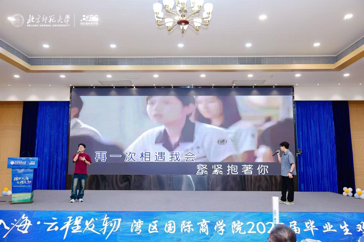最后,熟悉的旋律再次响起。在校生代表与毕业生代表献上《那些年》《七里香》,舞台大屏播放着毕业生们在校期间的珍贵照片。课堂上的交流、运动场上的拼搏、集体活动的身影,将求学时光的点点滴滴浓缩于光影之中。动人音符唤起满场珍贵回忆,同窗情谊在歌声中永恒沉淀。